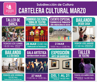 Ixtapaluca, Edo de Méx.- En marzo, la subdirección de Cultura Ixtapaluca realizará como parte de su cartelera, actividades alusivas al Equinoccio de la Primavera, mismas que se presentarán de manera virtual debido a la pandemia.